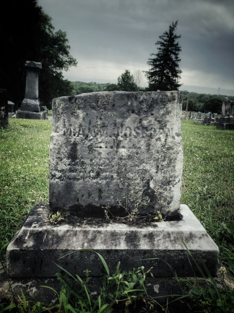 The night drags on. How long have I been here? I do not know, nor do I care. Just then the clouds and fog clear enough to shine a spotlight on a third tombstone. I have never seen this one before. I squint in the darkness hoping my eyes will adjust. An intense shockwave shot through my body and then again, stopping my heart for what seemed like eternity. Tears, instantly flooding my eyes. It is his name. The name of the one who brought me to this graveyard in the first place; the reason the first two headstones exist. I rush over to it leaving indentations in the second grave where I had been kneeling.